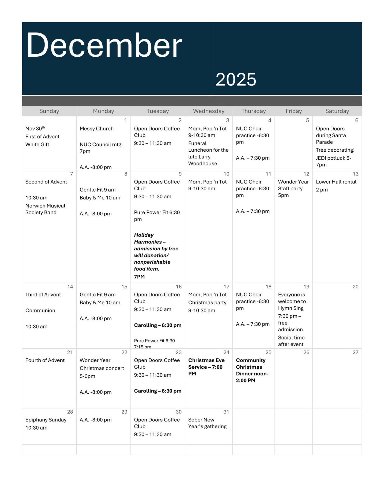 NUC DECEMBER 2025 Calendar