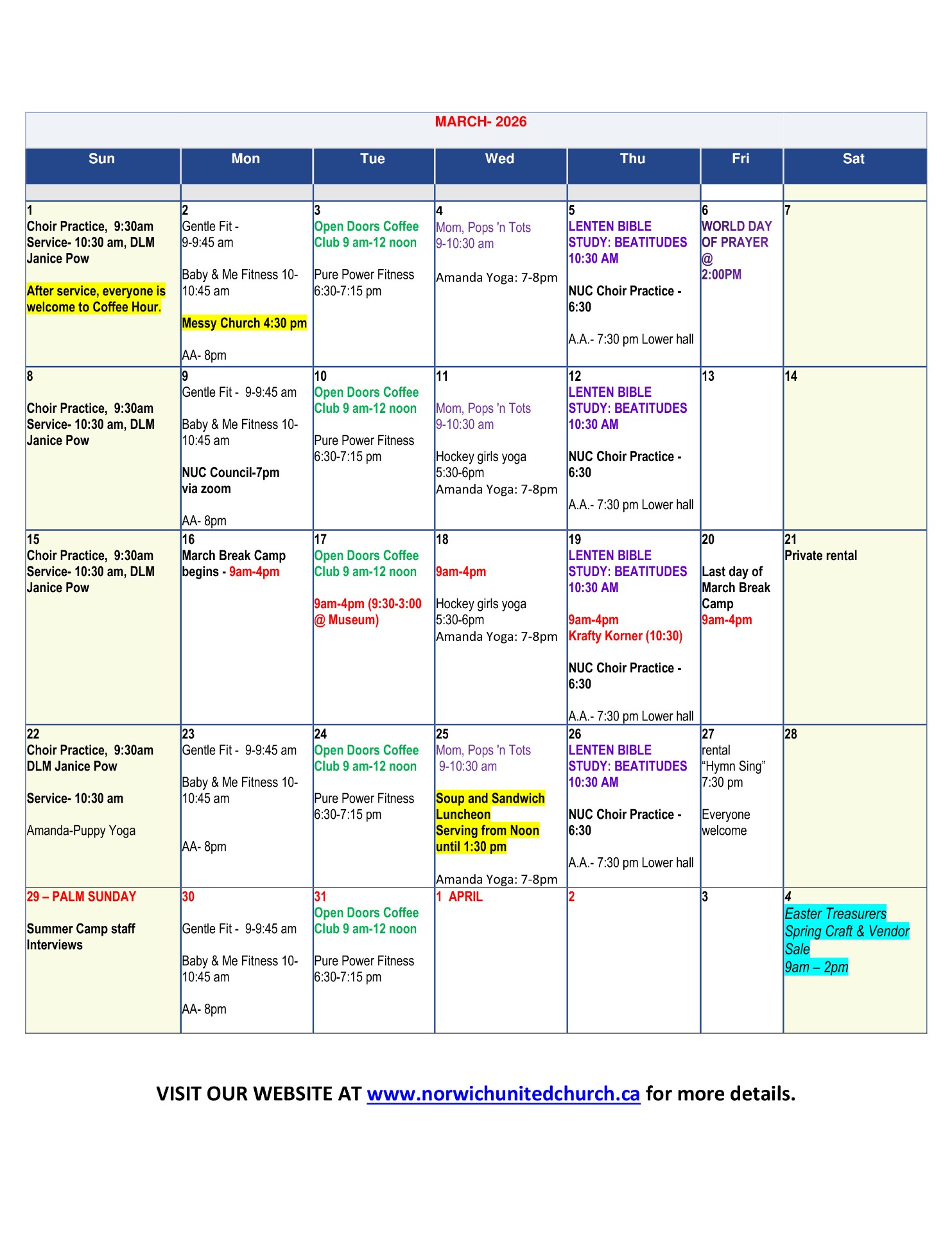 You may leave your offering at Norwich Shoppers Drug Mart in an envelope clearly marked to Norwich United Church in care of Diane Tribe. Diane is in the Norwich store all day Monday and until noon on Friday. You can mail to the church address as well.