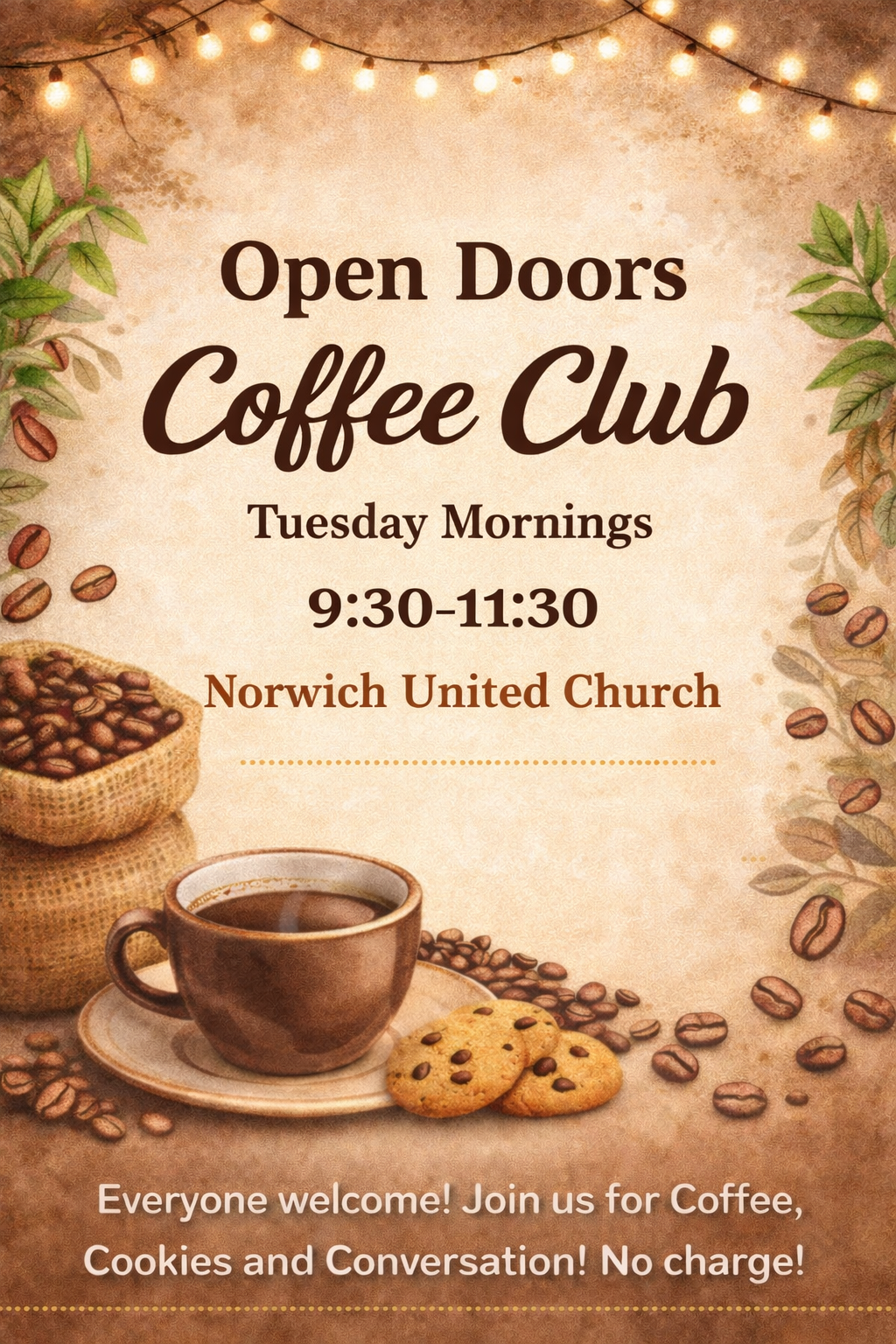 Coffee, Tea & Hot Chocolate is available during Sunday morning services. To reduce cost, waste and environmental impact, we serve in mugs. We encourage you to bring your own personal cup.